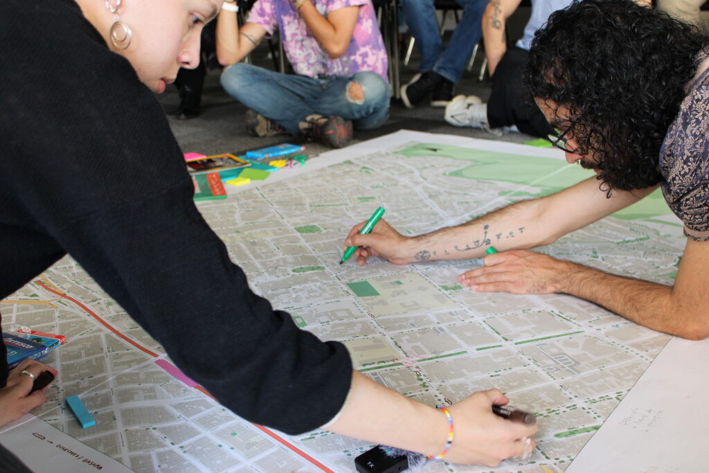 El taller de Chapinero se realizó en dos jornadas: la primera en la Reserva Cerros de Bogotá y, la segunda en un salón ubicado sobre Avenida Chile (Calle 72). En ambas participaron jóvenes y personas adultas y con perfiles diversos -arquitectos, profesoras, jefas de hogar, activistas, trabajadores administrativos-, quienes compartieron miradas sobre la relación entre ciudad, naturaleza y futuro urbano.