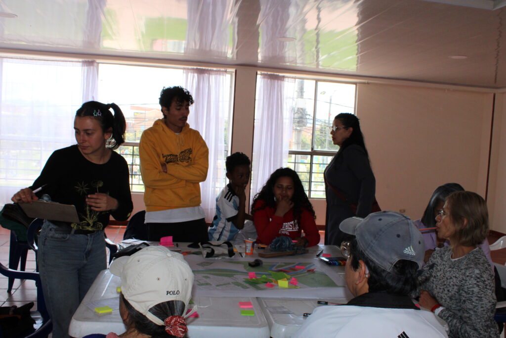 Volvimos al salón comunal en dónde pudimos cartografiar lo que identificamos por cada especie. Pensamos en baños públicos, basura contaminada y ausencia de recursos para la vida sana. Luego, mientras compartimos unas deliciosas empanadas preparadas por Leidi, pensamos en soluciones a estos problemas, pensamos en una ciudad biodiversa y equitativa, en la que los barrios de la periferia tienen acceso a una vida saludable, una movilidad digna y un espacio público de calidad con enfoque comunitario.